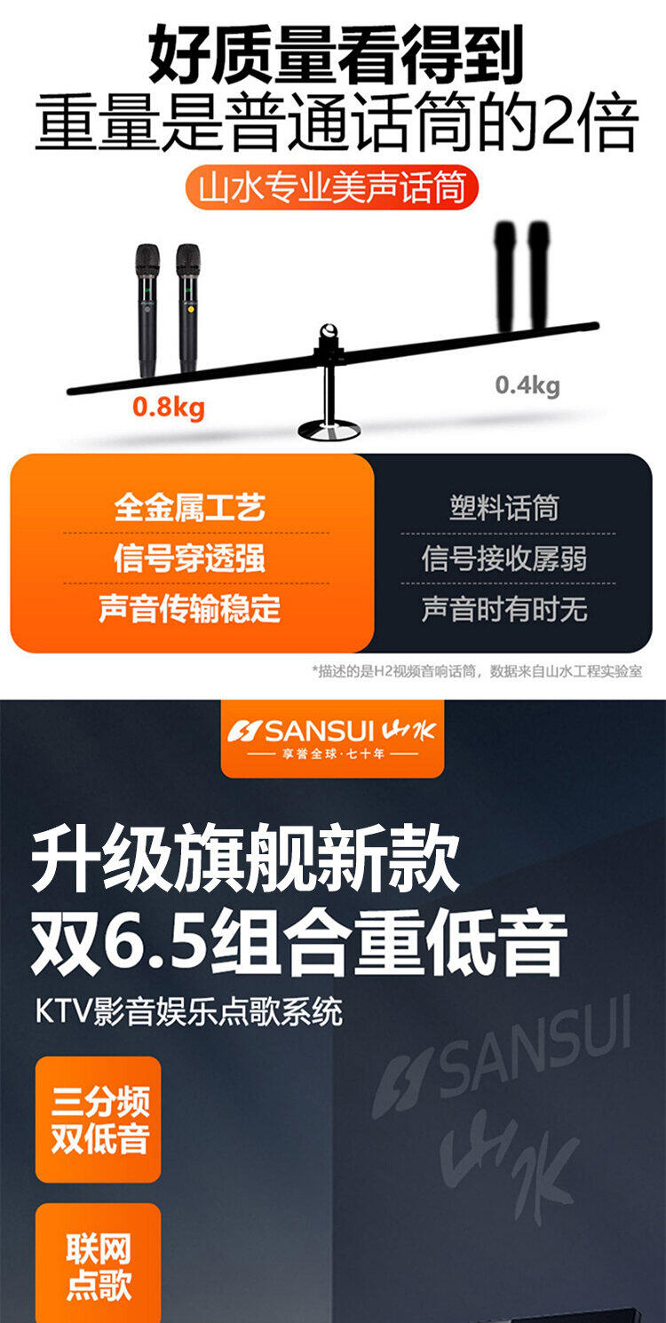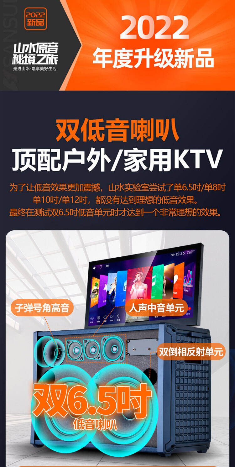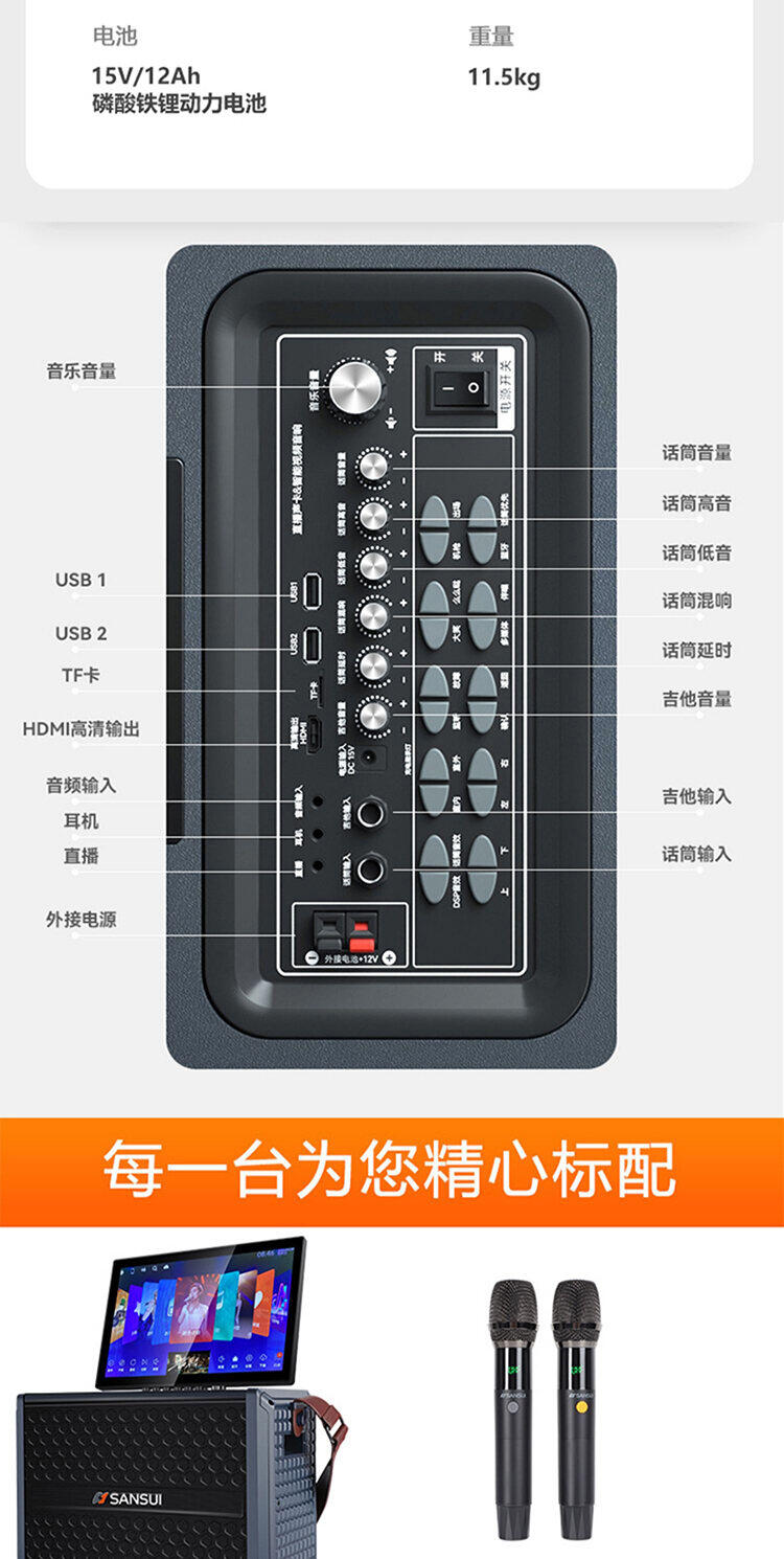 山水H2便携式大功率音响户外音箱卡拉OK家庭KTV套装卡拉OK播放器广场舞音响