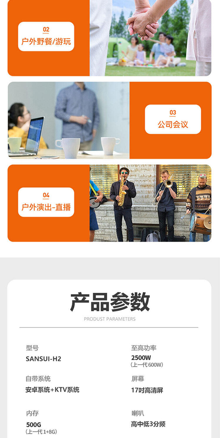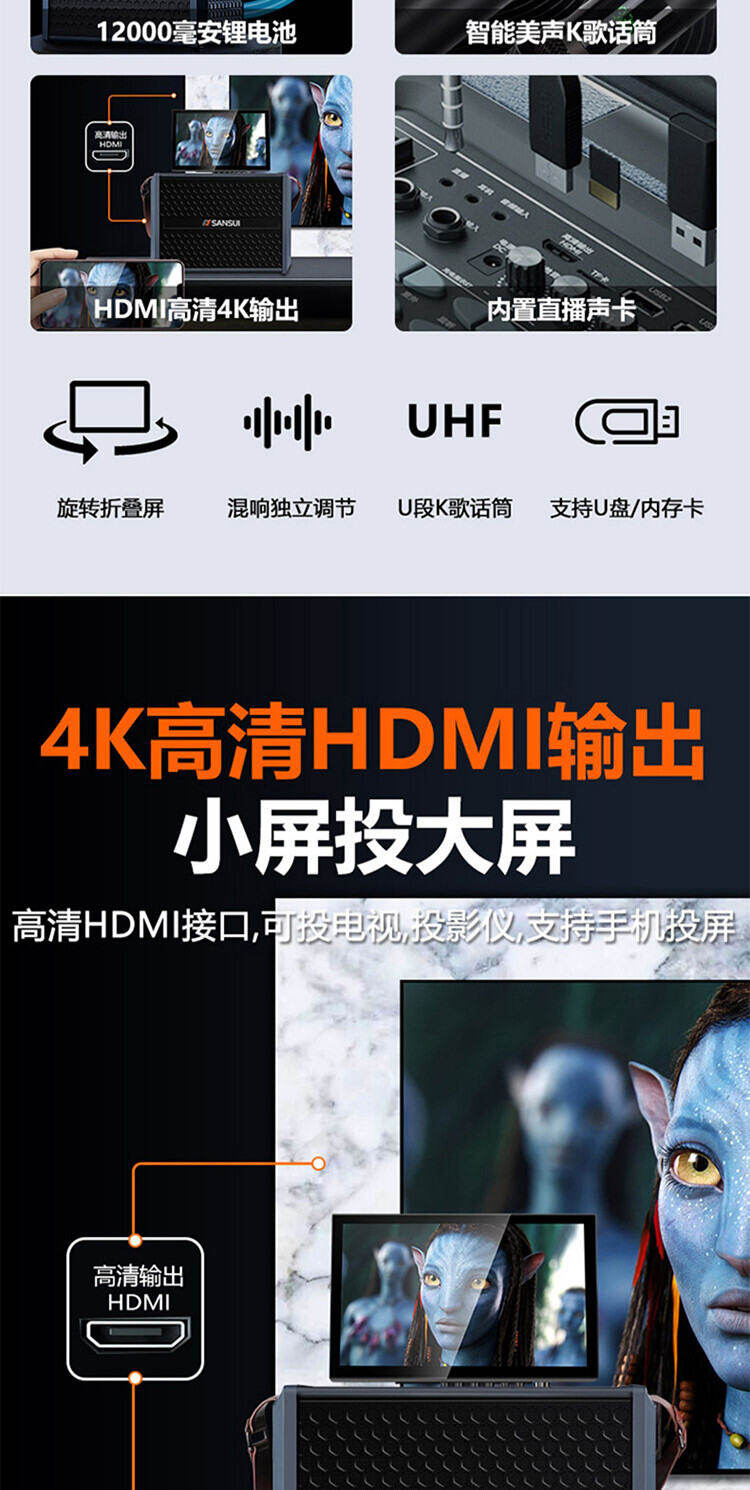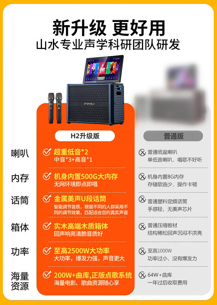 山水H2便携式大功率音响户外音箱卡拉OK家庭KTV套装卡拉OK播放器广场舞音响